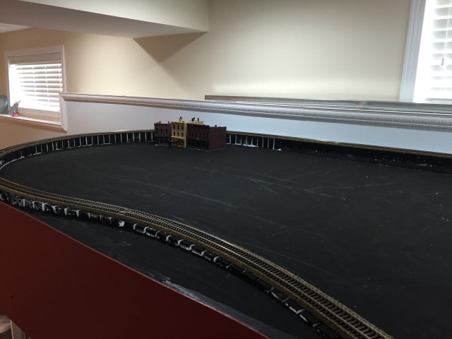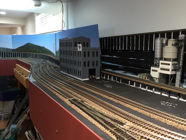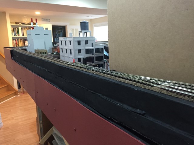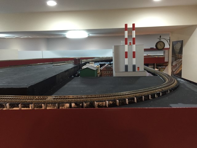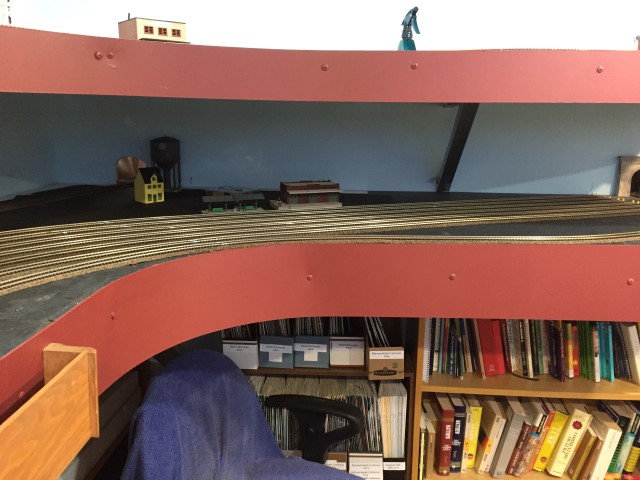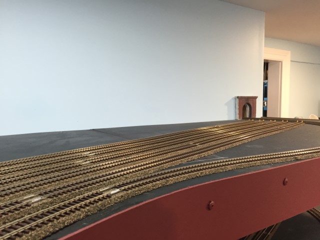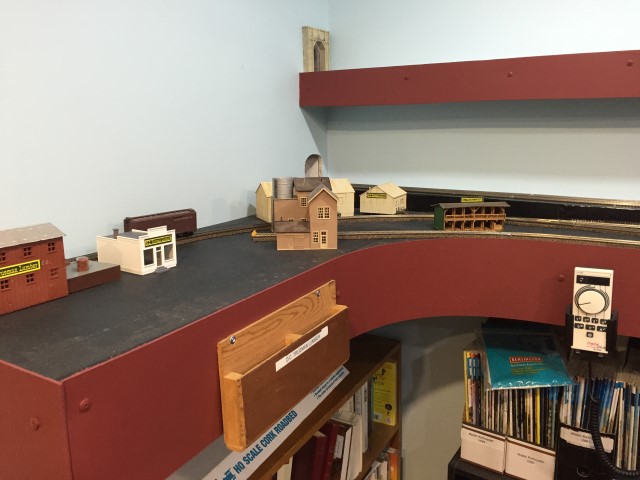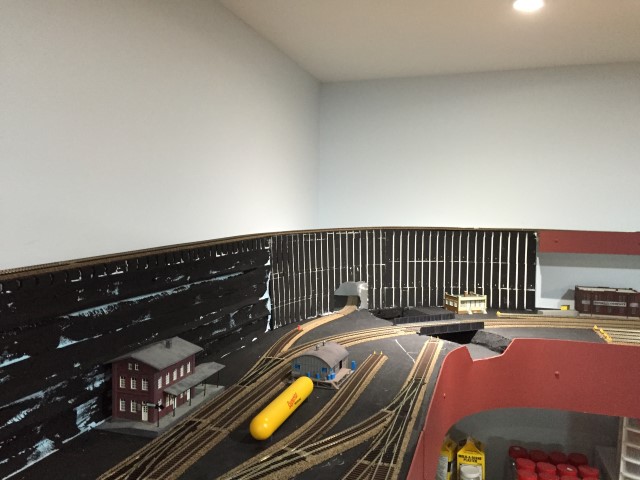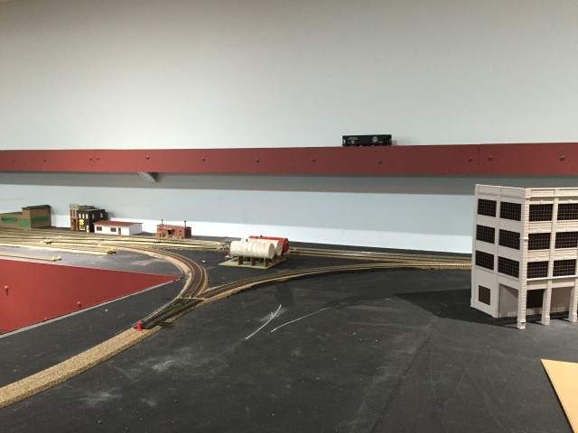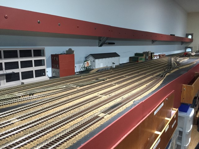 Yard storage tracks and the loop track going through the wall
