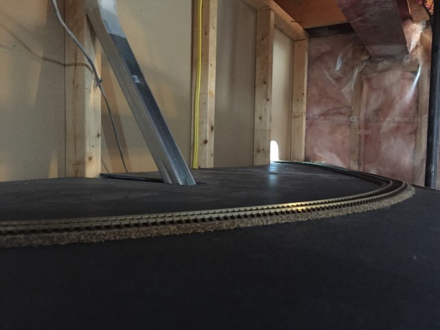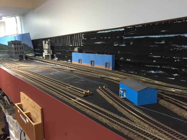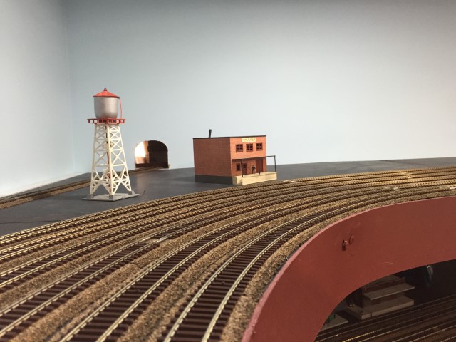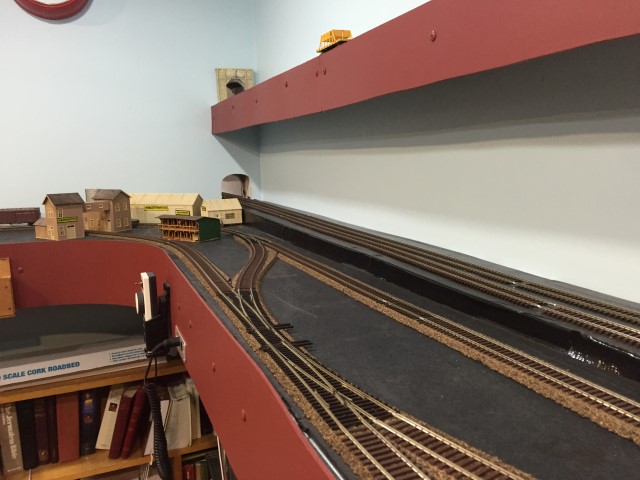 Yard storage tracks and the loop track going through the wall